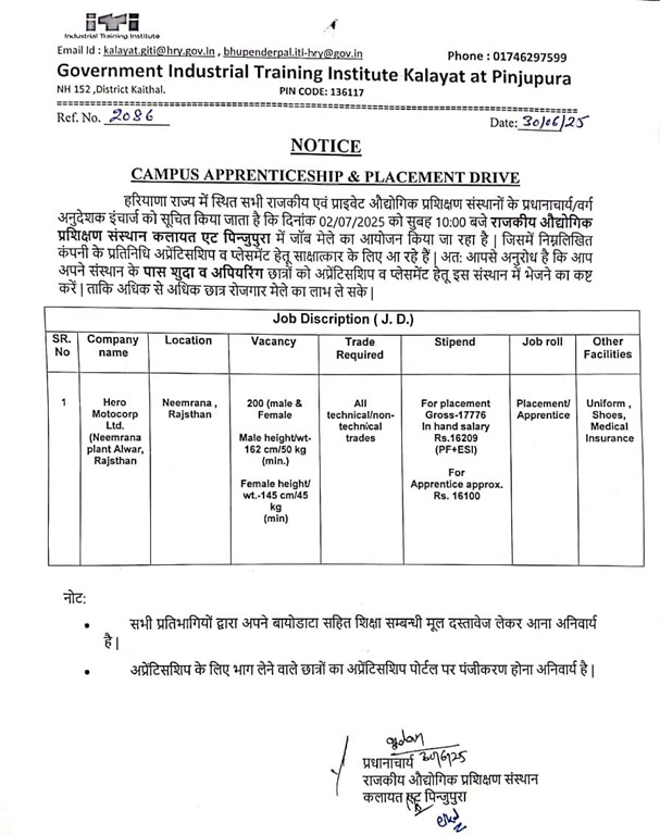 - राजकीय आई. टी. आई कलायत में ड्रैस मेकिगं व कोस्मेटोलॉजी के प्रशिक्षणार्थीयों द्वारा आम जनता के लिए 9 मई 2025 से 30 मई 2025 तक निशुल्क सेवाएं